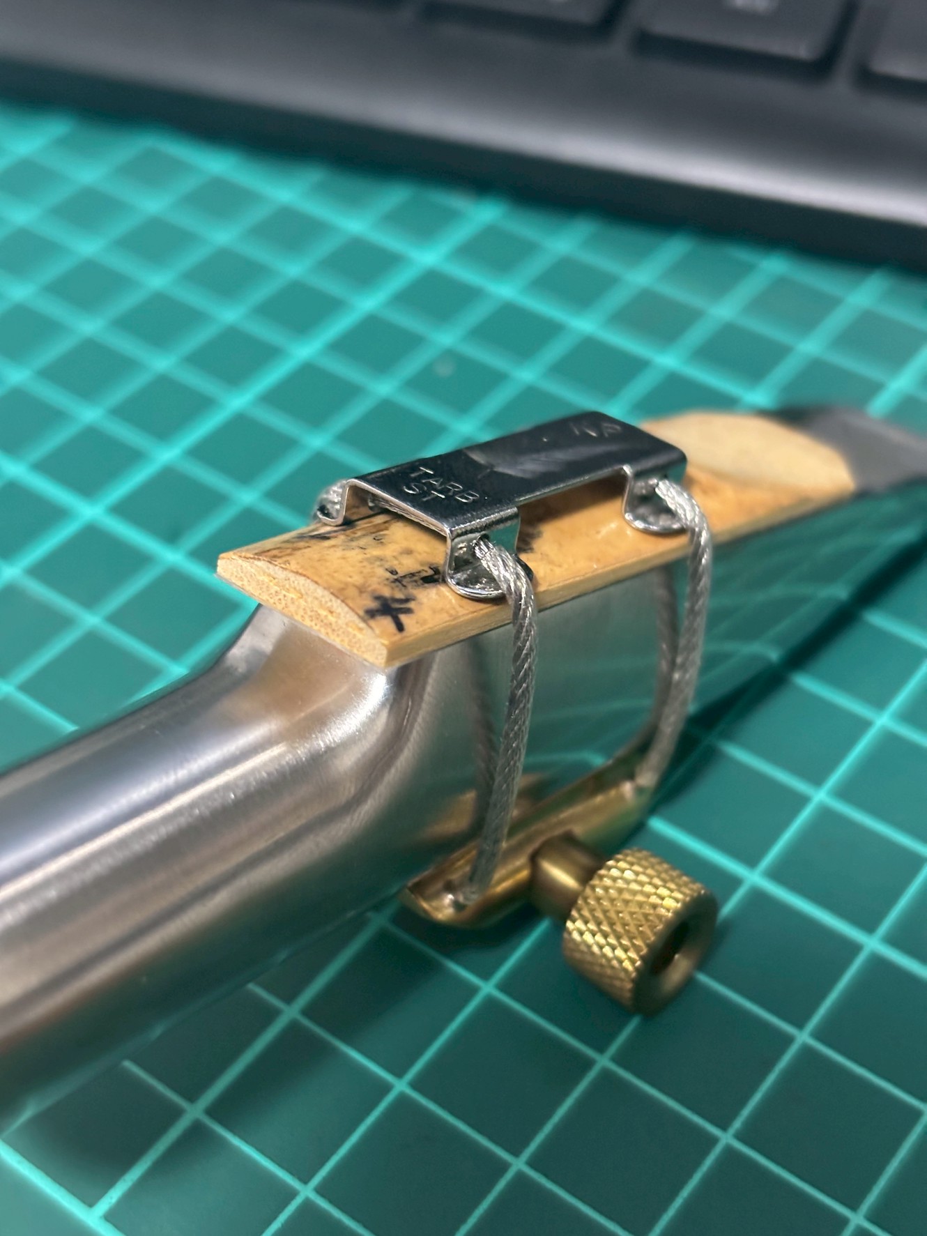 リガチャーは歪み防止のためメインのマウスピースを似た径の
